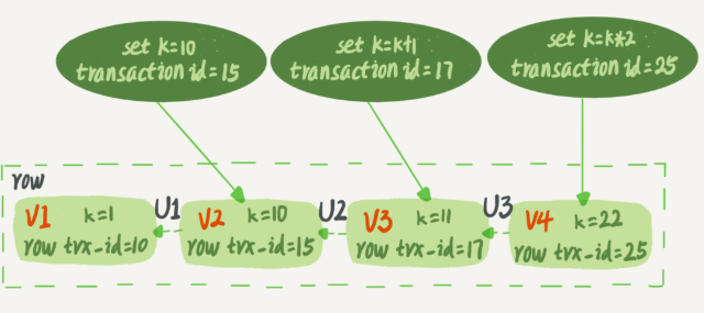 注意在数据的多版本中,不管事务有无提交数据更新都会被记录为一个版本。