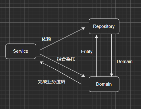- Service 通过组合和委托通过 Domain 完成业务逻辑,通过 Repository 完成数据交换