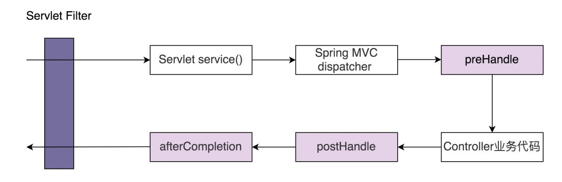 过滤器 和 Spring MVC 拦截器,这两算是职责链模式的经典应用了,它两的关系如下图: