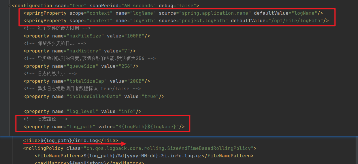 logback.xml 获取到 spring boot yaml 文件中的配置