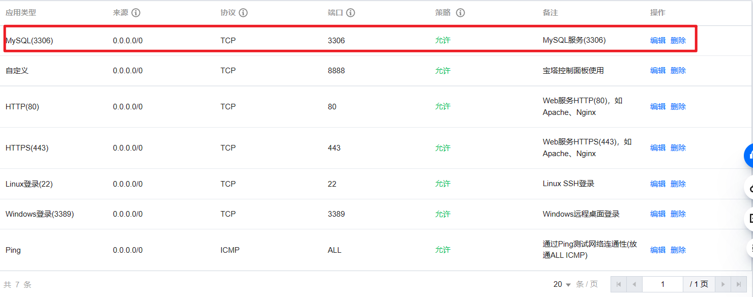 腾讯云轻量级应用服务器控制台,防火墙设置打开3306端口限制,如下: